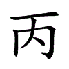 【唐韻】兵永切【集韻】【韻會】【正韻】補永切,𠀤音炳。十幹名之一。【爾雅·釋天】太歲在丙曰柔兆。月在丙曰修。【說文】南方之位也。南方屬火,而丙丁適當其處,故有文明之象。 又【周髀算經】上天名靑丙,下地曰靑戊。 又【張衡·東京賦】大丙弭節,風后陪乗。【註】大丙,神名。 又【集韻】陂病切,音柄。日名。