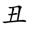 【廣韻】【集韻】【韻會】敕久切【正韻】齒九切,𠀤音醜。十二月辰名。【爾雅·釋天】太歲在丑曰赤奮若。【淮南子·時則訓】招搖指丑。【前漢·律歷志】孳萌於子,紐牙於丑。 又神名。【山海經】女丑之尸。 【六書正譌】手械也。从又,手也,有物以縶之。象形。因聲借爲子丑字,十二月之象也。又丑象子初生舉手。
