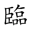 〔古文〕𦣷【唐韻】力尋切【集韻】【韻會】犂針切【正韻】犂沉切,𠀤音林。【爾雅·釋詁】臨,視也。【詩·衞風】日居月諸,照臨下土。又【大雅】上帝臨女,無貳爾心。【箋】臨,視也。【禮·曲禮】臨諸侯,畛於鬼神。【疏】以尊適𤰞曰臨。【穀梁傳·哀七年】春秋有臨天下之言焉,有臨一國之言焉,有臨一家之言焉。【註】徐乾曰:臨者,撫有之也。 又【博雅】臨,大也。 又【戰國策】縣隂以甘之,循有燕以臨之。【註】臨,猶制也。 又易卦名。 又車名。【詩·大雅】以爾鉤援,與爾臨衝,以伐崇墉。【傳】臨,臨車也。【疏】臨者,在上臨下之名。【釋名】臨,如字。韓詩作隆。 又地名。【左傳·哀四年】荀寅奔鮮虞,趙稷奔臨。【註】臨,晉邑。 又丘名。【爾雅·釋丘】右高名臨丘。 又姓。【後趙錄】秦州刺史臨深。【孔融傳】有臨孝存。 又門名。【左思·吳都賦】左稱彎崎,右號臨硎。【註】彎崎,臨硎,閽闥名。吳後主起昭明宮,於太初之東開彎崎臨硎二門,彎崎宮東門,臨硎宮西門。 又【韻會】力鴆切【正韻】力禁切,𠀤林去聲。【增韻】喪哭。【顏師古曰】衆哭曰臨。【左傳·宣十二年】楚子圍鄭,旬有七日。鄭人卜行成,不吉。卜臨于大官,且巷出車,吉。【註】臨,哭也。【釋文】臨,力鴆切。 又【韻補】叶盧東切,音隆。【詩·大雅】后稷不克,上帝不臨。耗斁下土,寧丁我躬。【司馬相如·長門賦】奉虛言而望誠兮,期城南之離宮。修薄具而自設兮,君不肯乎幸臨。 又叶力陽切,音良。【秦始皇祠洛水歌】洛陽之水,其色蒼蒼。祠祭大澤,倏忽南臨。洛濱醊禱,色連三光。