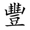 〔古文〕𣍈𧯮【唐韻】敷戎切【集韻】【韻會】敷馮切,𠀤音酆。【說文】豆之豐滿者也。一曰器名,鄕飮酒有豐侯,亦謂之廢禁。【陸佃云】似豆而𤰞。【海錄碎事】《射禮》:置豐於西階。古豐國之君以酒亡國,故以爲罰爵,圖其人形於下寓戒也。【儀禮·鄕射禮】司射適堂西,命弟子設豐。【註】將飮不勝者,設豐所以承其爵也。【疏】按《燕禮》君尊有豐,此言承爵豐,則兩用之。又【玉篇】大也。【廣韻】多也。【易·豐卦疏】豐者,多大之名,盈足之義。財多德大,故謂之豐。【書·高宗肜日】典祀無豐于昵。【疏】謂犧牲禮物多也。【楚語】彼若謀楚,其必有豐敗也哉。【註】大也。【揚子·方言】凡物之大貌曰豐。又趙魏之郊,燕之北鄙,凡大人謂之豐人。燕記曰:豐人杼首。杼首,長首也。 又【廣韻】茂也,盛也。【詩·小雅】在彼豐草。【傳】豐,茂也。【楚語】夫事君者,不以豐約舉。【註】豐,盛。約,衰也。 又猶厚也。【周禮·地官·大司徒】原隰,其民豐肉而庳。 又歲熟曰豐。【詩·周頌】豐年多黍多稌。【公羊傳·桓三年】大有年何,大豐年也。【註】謂五穀皆大成熟。 又【博雅】雲師謂之豐隆。一曰雷師也。【屈原·離騷】吾令豐隆乗雲。【淮南子·天文訓】季春三月,豐隆乃出。【註】雷也。 又豐席。【孔安國·書傳】豐,莞也。郭璞曰:今西方人呼蒲爲莞,用之爲席。鄭康成曰:刮凍竹席也。 又豐本,韭別名。【禮·曲禮】凡祭宗廟之禮,韭曰豐本。【註】其根本茂盛也。 又地名。【書·武成】王來自商,至于豐。【傳】文王舊都在京兆鄠縣,今長安縣西北是也。通作酆。 又水名。【詩·大雅】豐水東注。【後漢·郡國志註】豐水出鄠南山豐谷,北入于渭。通作灃。 又縣名。【前漢·地理志】豐縣,屬沛郡。 又州名。古太原郡,宋置豐州。又陝西,隋置豐州。 又山名。豐山,在滁州南二里許,上有豐樂亭。見【歐陽修記】。又人名。【前漢·古今人表】𨻰豐,帝嚳妃,生堯。【師古曰】卽𨻰鋒也。 又姓。【廣韻】鄭穆公子豐之後。又複姓。豐將氏。見【潛夫論】。 又叶敷文切,音分。【蔡邕·𥓓】民安物豐。上叶綏我荆衡,下叶以紀洪勳。 又叶敷康切,音芳。【韓愈·歐陽生哀辭】友則旣獲兮,祿實不豐。以志爲養兮,何有牛羊。