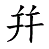 𢆙。隷作幷。相从也。【周禮·冬官考工記】輿人爲車。凡居材大與小無幷。【註】幷謂偏邪相就也。 又【廣韻】幷,合也。【謝靈運·初去郡詩】廬園當巖栖,